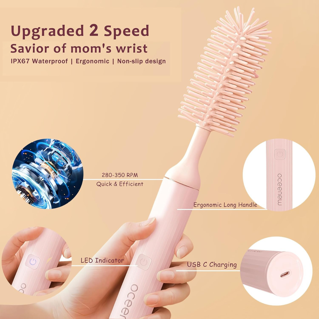 Its versatile design and silicone tip clean any type of container, removing 100% of dirt quickly and safely.