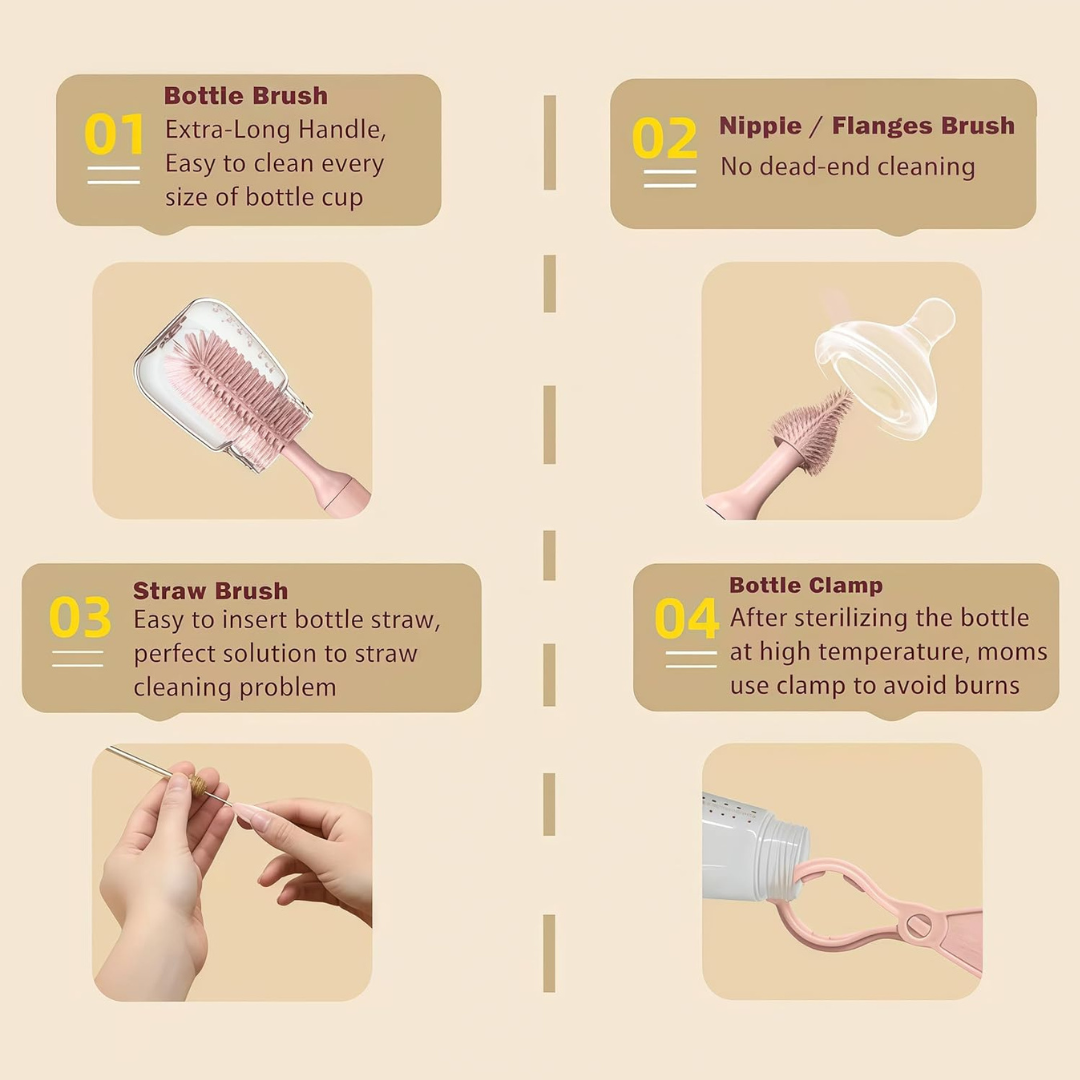 Comes with interchangeable tools that fit all types of utensils, ensuring a complete and effortless clean.